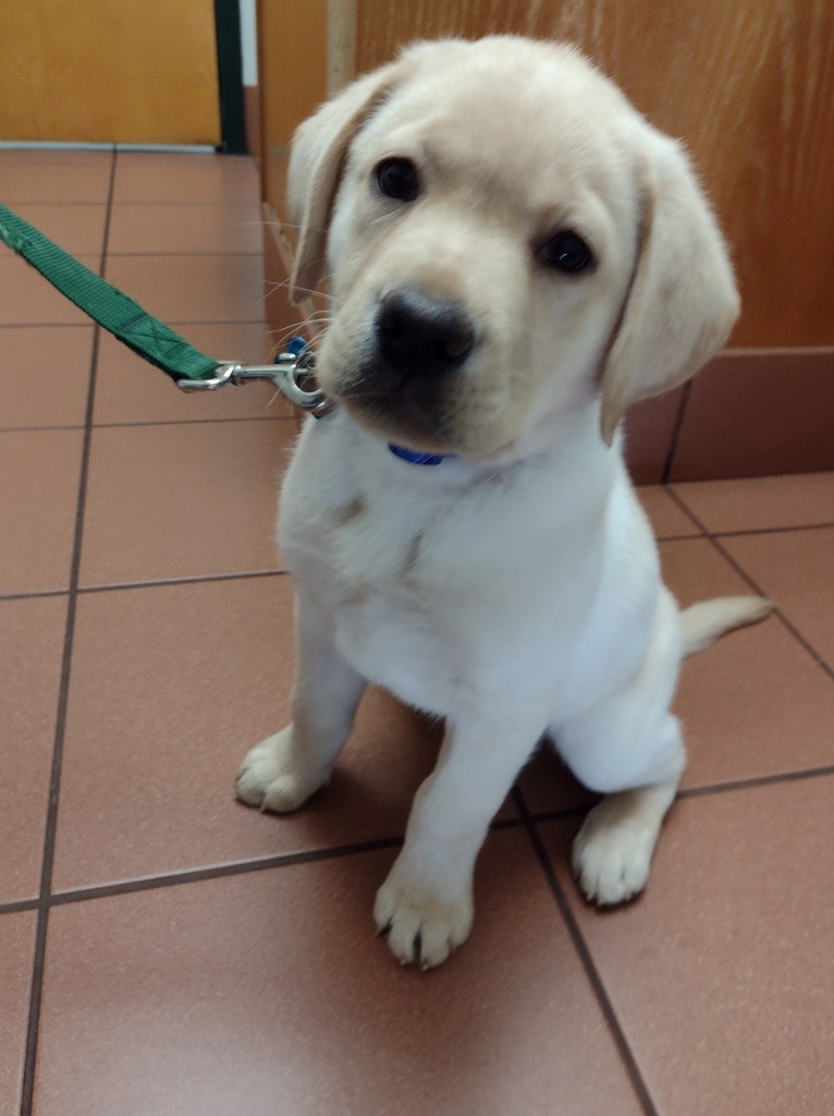 Every day, the pair embarks on multiple walks around their quaint town, navigating the familiar streets with confidence. Andie assists his partner with his footing with a tail wagging. Andie’s happy nature shines bright, making errands feel less like a chore and more like an adventure. His ability to wait patiently between tasks is a testament to his training and his desire to please. The graduate enjoys volunteering with children, which made Andie’s an excellent match, given his vast puppy raising exposures with kids.