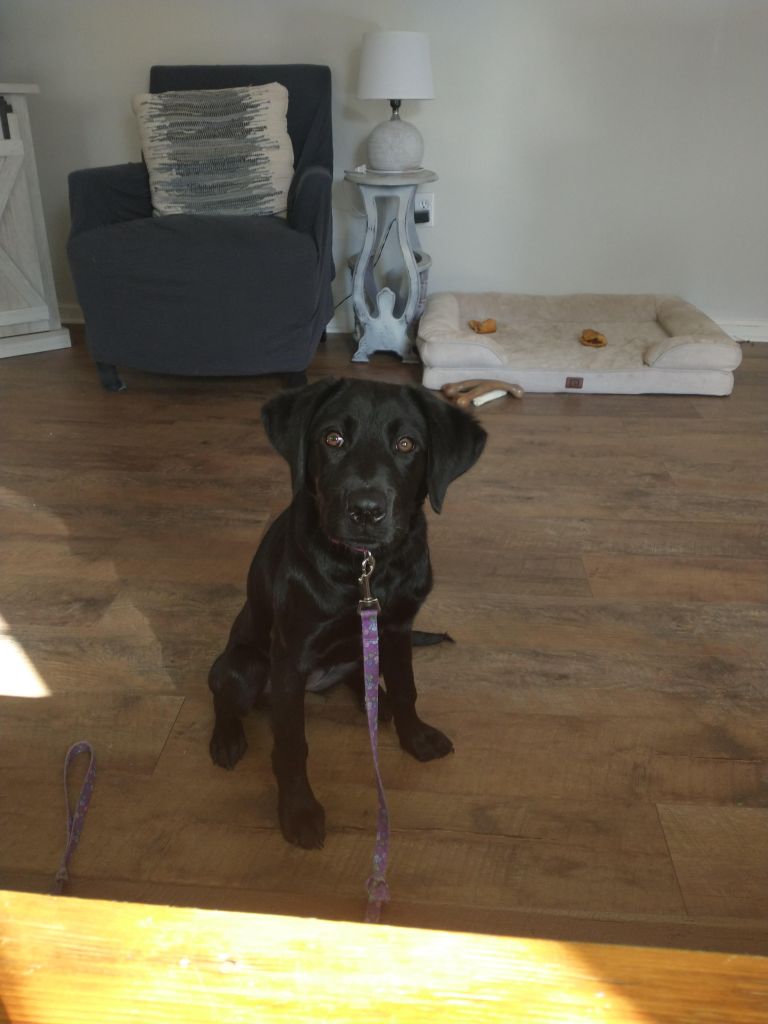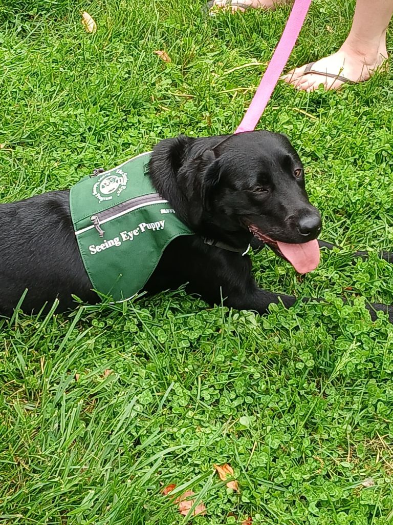 Oreo has earned her vest! At approximately 6 months of age, our puppies are eligible to earn a vest to wear on outings. They must demonstrate that they have a firm grasp on basic commands. She will continue to practice until she is ready to return for formal training. Congratulations to Oreo and her raisers for reaching this milestone!