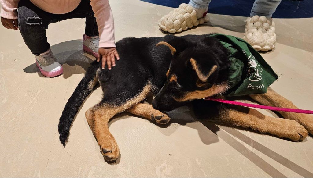 From the moment the puppies stepped inside, they were surrounded by new sights, sounds, and textures. The museum’s immersive exhibits offered a gentle challenge for young pups learning to stay calm and focused in unfamiliar environments. Whether they were walking past towering dinosaur displays, simulated forests, or aquatic habitats, each moment helped build confidence and resilience.