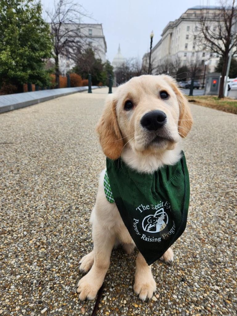 This week, Pilot and leaders from Guiding Paws along with other Seeing Eye puppy raisers made a trip to Washington DC. They attended an informational meet-and-greet hosted by National Service Animals Monument Corporation. The proposed monument is intended to honor service animals and their handlers. The monument has received Congressional approval and is currently in the site selection phase of implementation.