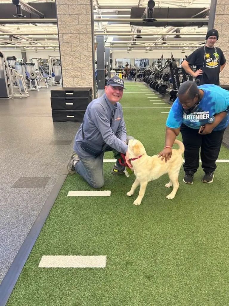 Gyms can be loud, busy, and sometimes intimidating spaces, making them an important part of a young dog’s socialization. With that in mind, Guiding Paws partnered with our local YMCA to offer a weeklong open invitation for our puppies to visit the fitness center, pool, and other areas of the facility.